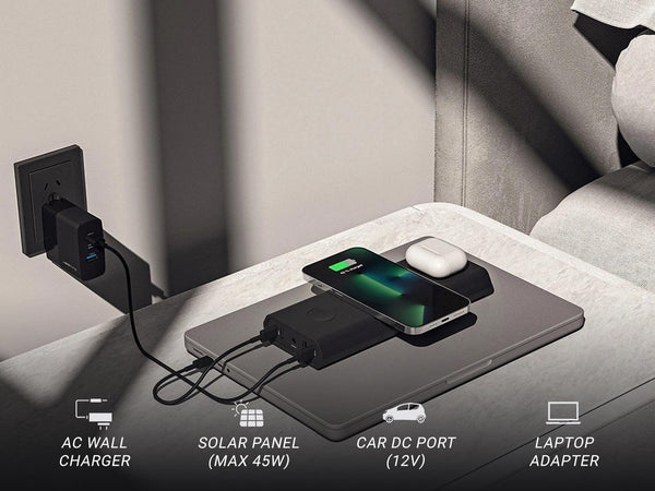 With our fast and flexible charging this portable laptop charger can recharge in under 3 hours. Its pass-through capabilities let you recharge the power bank (input) at the same time as it charges your devices (output).The Omni 30C+ charging bank gives you reliable power no matter where you are that can be completely customized to your needs.
