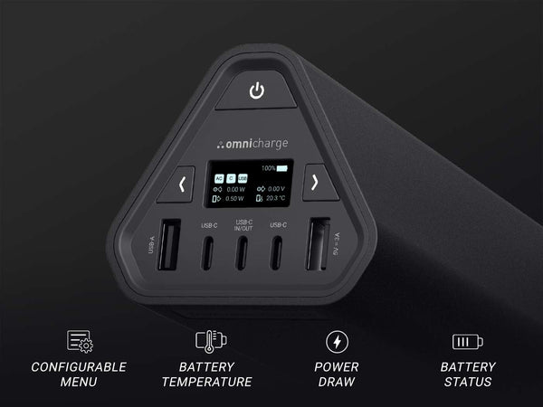 No more guessing how much power your devices need or how much power your Omnicharge is providing. Our OLED screen provides smart power readings so you can take better control of your devices power levels, knowing what you need to stay powered throughout the day. The power is in your hands.