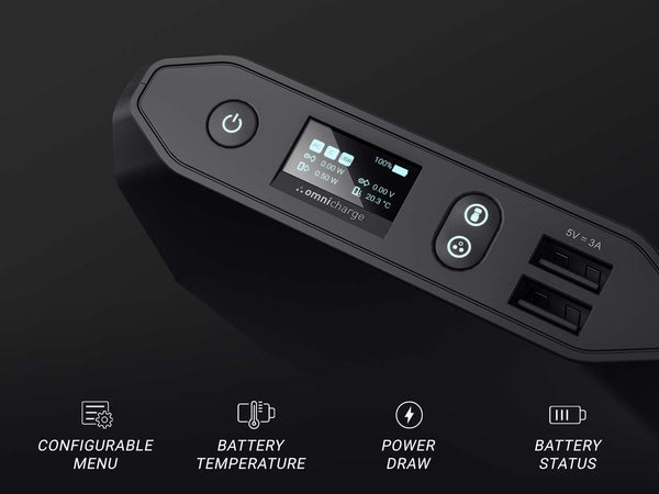 No more guessing how much power your devices need or how much power your Omnicharge is providing. Our OLED screen provides smart power readings so you can take better control of your devices power levels, knowing what you need to stay powered throughout the day. The power is in your hands.